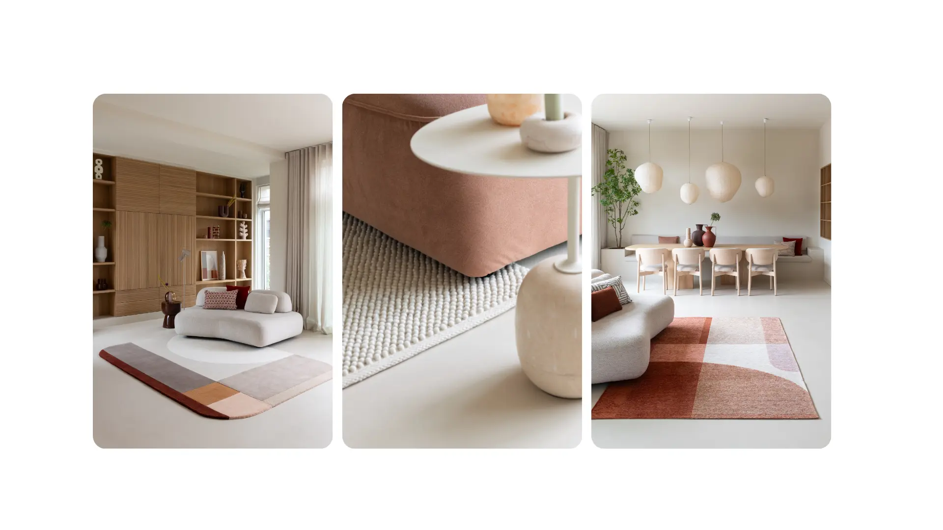 Toont hoge kwaliteit handgeweven vloerkleden. Tevens als FEELGOOD Custom Sizes te verkrijgen, waarbij u de maat en vorm bepaalt.