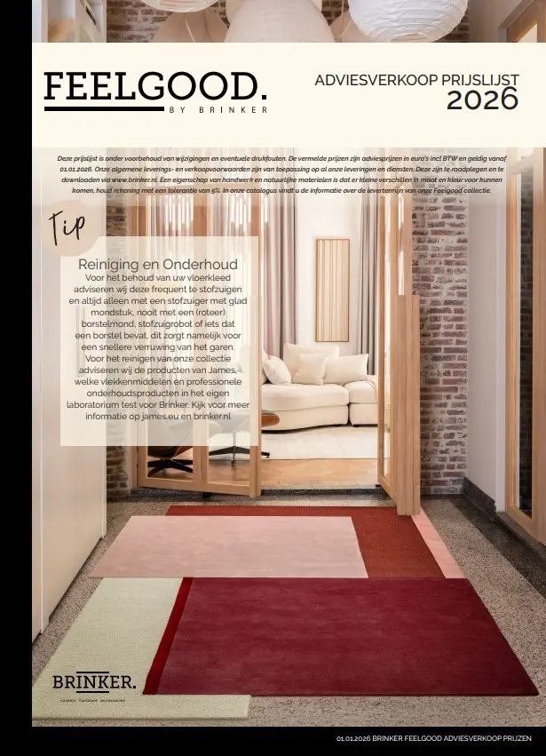 Ook in het nieuwe jaar streven wij ernaar onze Brinker dealers te kunnen blijven voorzien van hoogwaardige en inspirerende collecties. Daarbij willen wij de kwaliteit van onze producten en dienstverlening continu blijven waarborgen. Om de stijgende kosten in onze keten op te kunnen vangen is een actualisatie van de prijzen noodzakelijk. Wij hebben deze aanpassing zorgvuldig en zo beperkt mogelijk gehouden, zodat wij ook in 2026 een stabiel en realistisch prijsniveau kunnen bieden.