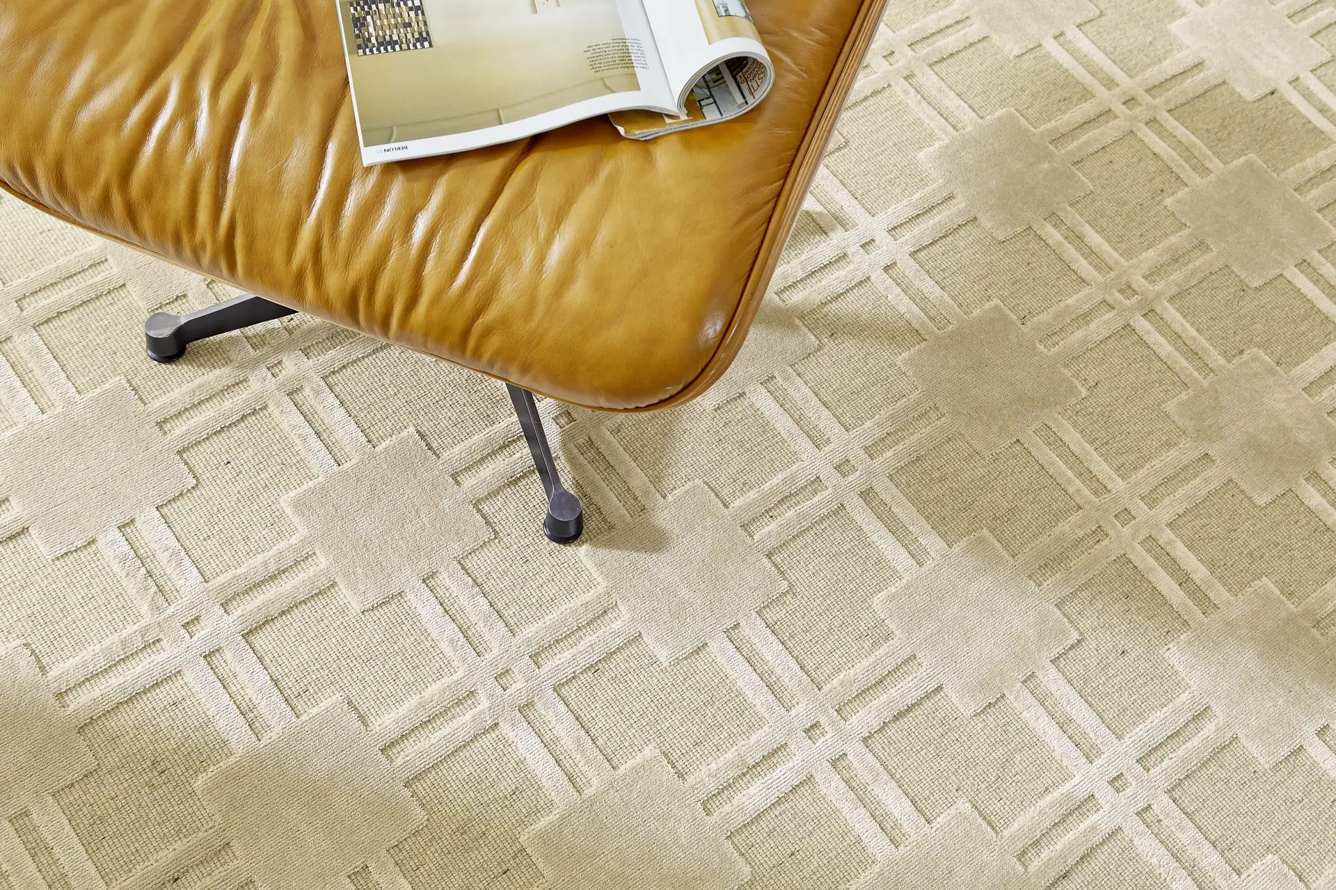 A unique rug characterized by a high-low material structure. The minimalist design ensures that this rug fits into various interior styles, from Japandi to Modern.