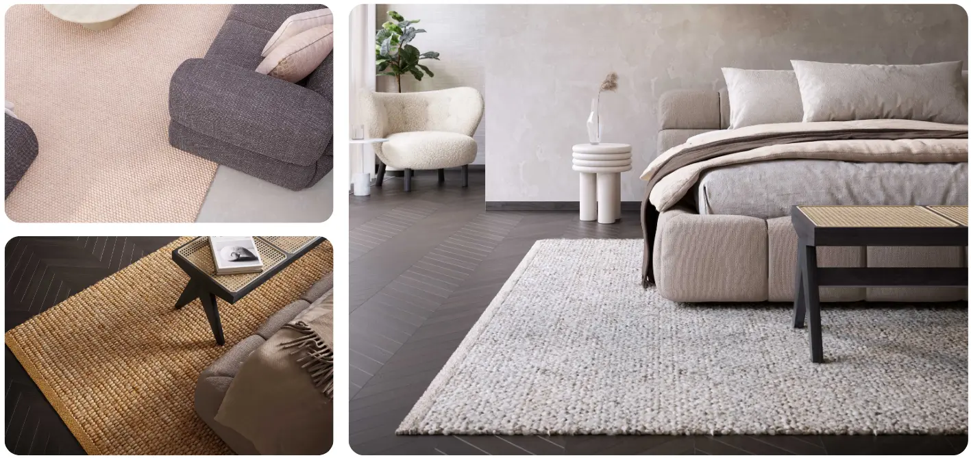 Deze collectie bevat 9 unieke items met elk een eigen weeftechniek en daarmee een eigen look. Alle items zijn verkrijgbaar in 38 kleuren. Bij een aantal kleden kunt u kiezen voor een wollen witte -, wollen zwarte – of sisalkettingdraad.